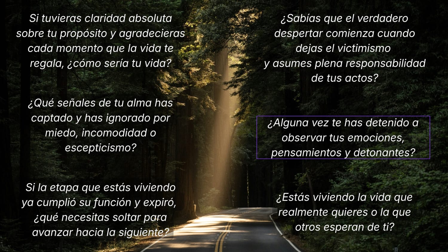 Durante mucho tiempo nos enseñaron a vivir dormidos, en automático, reaccionando desde el miedo, la ansiedad o la frustración. Al sistema le conviene que vivamos así, desconectados de nosotros mismos, sin cuestionar u observar, sin tomar verdadera responsabilidad de nuestra vida.